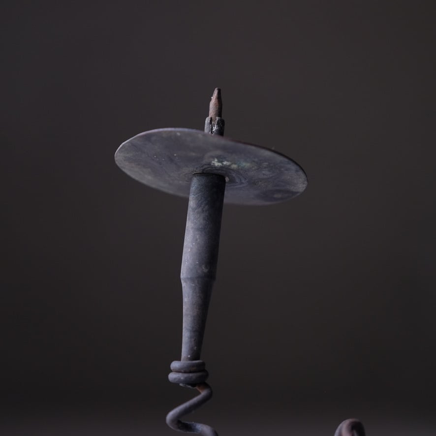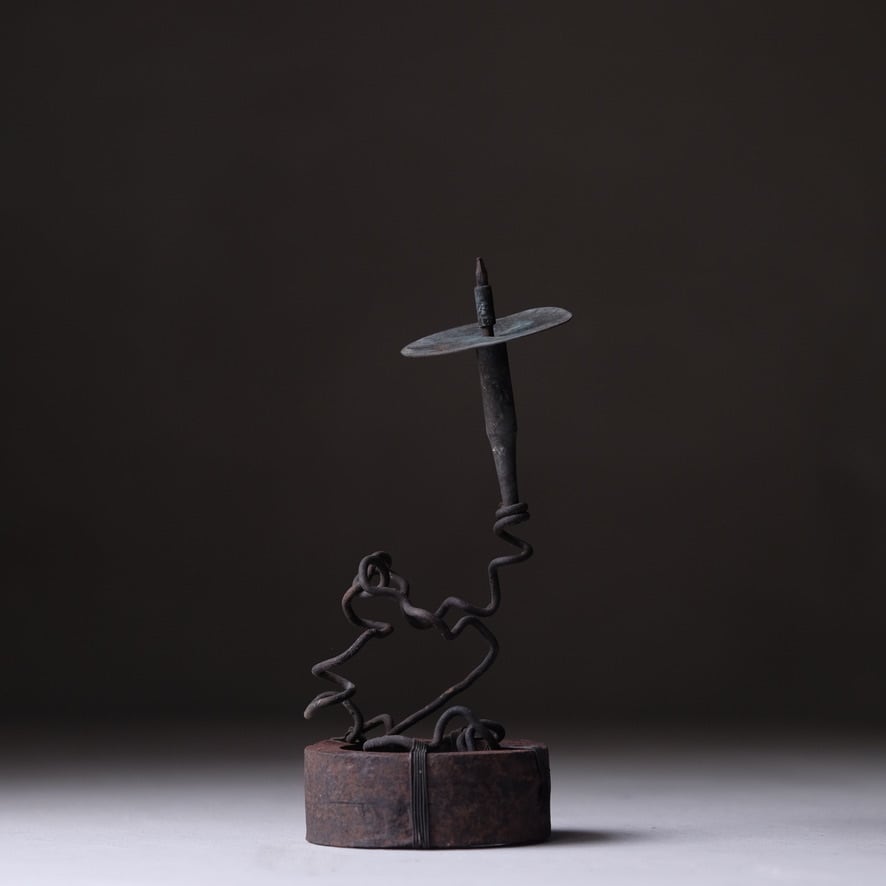No.|Ob00008 Size|台座Φ86 × H200 ㎜ Country|日本 Material|鉄 銅 Condition|受け皿は固定されておりません
